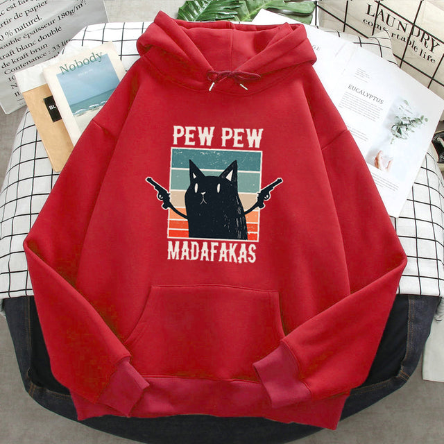 Pew Pew Madafakas Black Cat Funny Print Mens Hoodie Harajuku Ullzang Streetwear Anime Sweatshirt Warm Casual Oversized Hoody